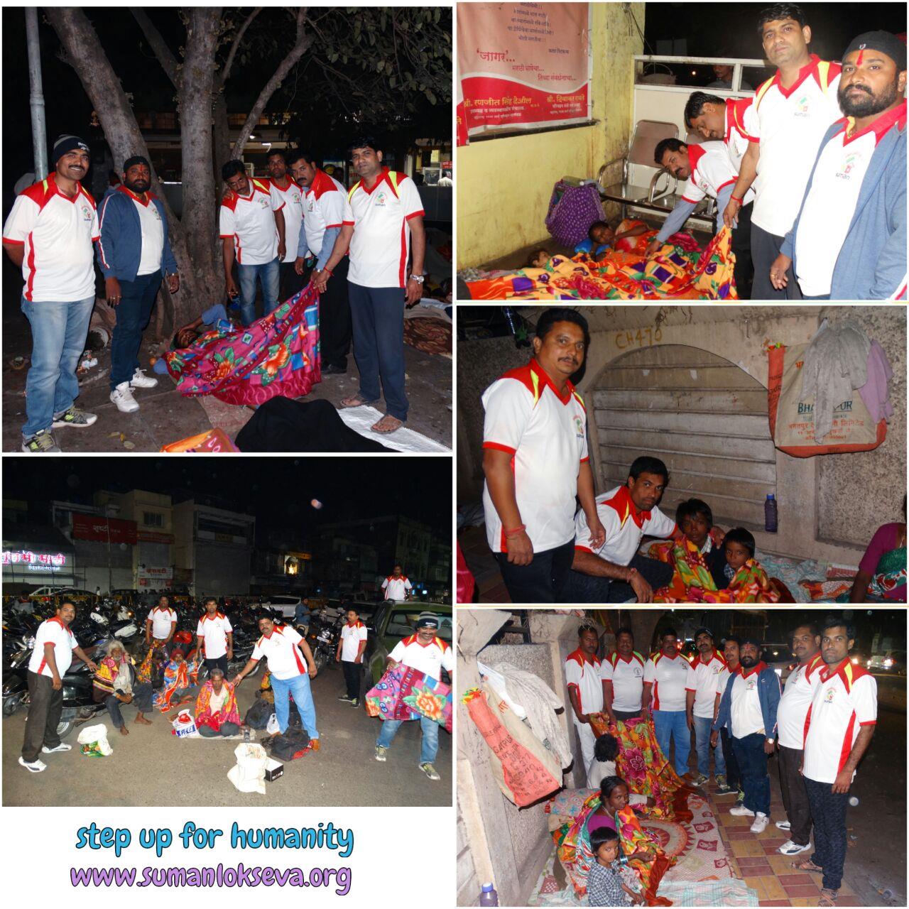 Suman Lokseva Member's Santosh Kamthe, Sachin Kamthe, Sandeep Satav, Balu Shahane and Little Member Suman & Shruti Mundlik distributed Blankets in Pune Station, Camp, Deccan, Swargate. Poor People sleep on Footpath in this cold.