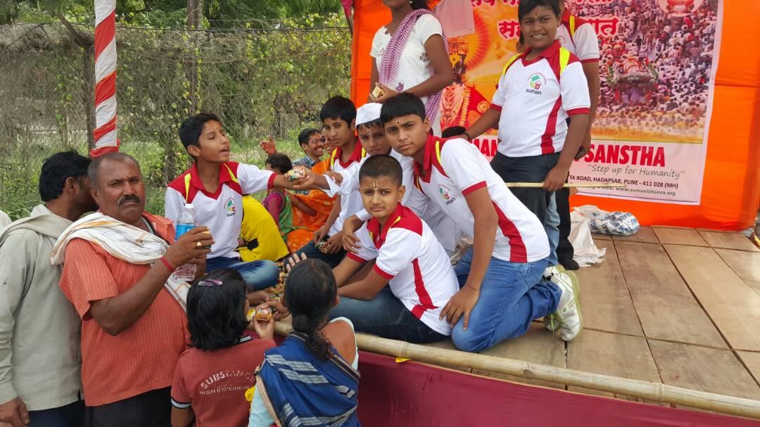 On 1st July 2016, Suman Loksabh Santha distributed food to Warkari at Fursungi Phata, Saswad Road. In this event, Santosh Kamthe, Sandeep Satav, Vishal Pawar, Sandip Pawar, Sachin Kamthe, Bapu Gosavi, Vinayak Shahane, Rohit Kamthe, Vishal Harpale, Anna More, Dr.Dnyaneshwar Mundlik participated.