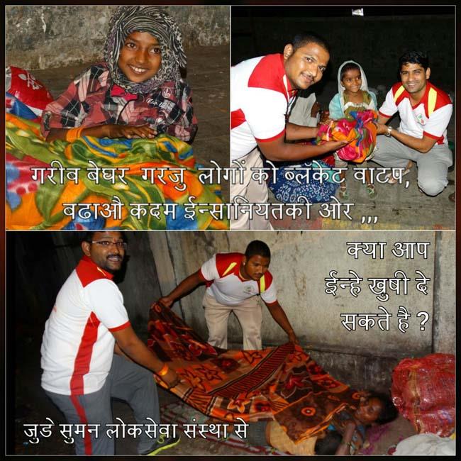 Suman Lokseva Sanstha is distributing Blankets to people. If anybody wants to be a part of this event. We will not accept cash or cheque. We will accept only item (Blankets).