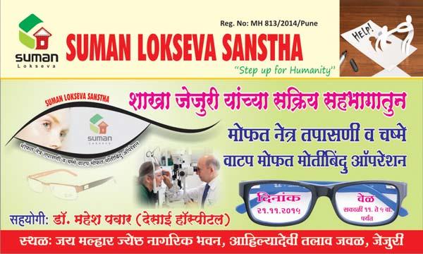 Suman Lokseva Sanstha Jejuri Branch organized Free Eye Check-up & Motibindu Operation camp on 21st November 2015 at Jejuri.